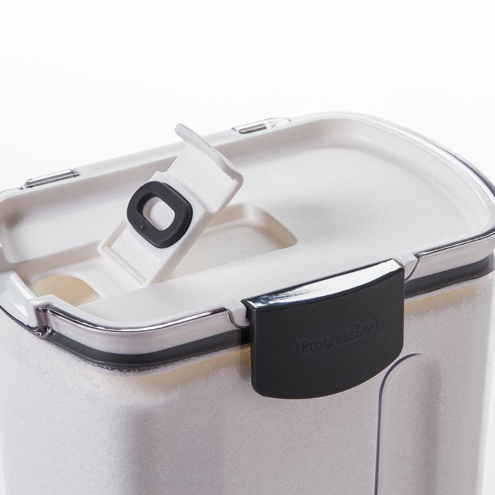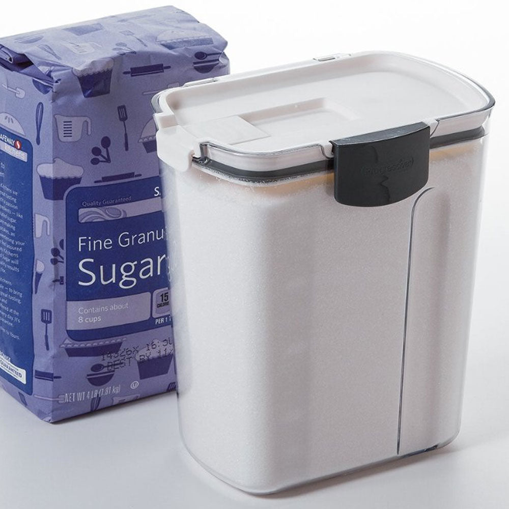 This large canister has a 2.3 quart capacity that can hold a standard four pound bag of sugar. All pieces are safe in the dishwasher and easy to clean. This piece matches the rest of the Progressive ProKepper line. While this container is created to store sugar. it can be used to store other dry ingredients in the kitchen or pantry. You can even use this storage container to house small craft pieces and other things around the home. The Sugar Keeper and Pourer is a great addition to any home kitchen.