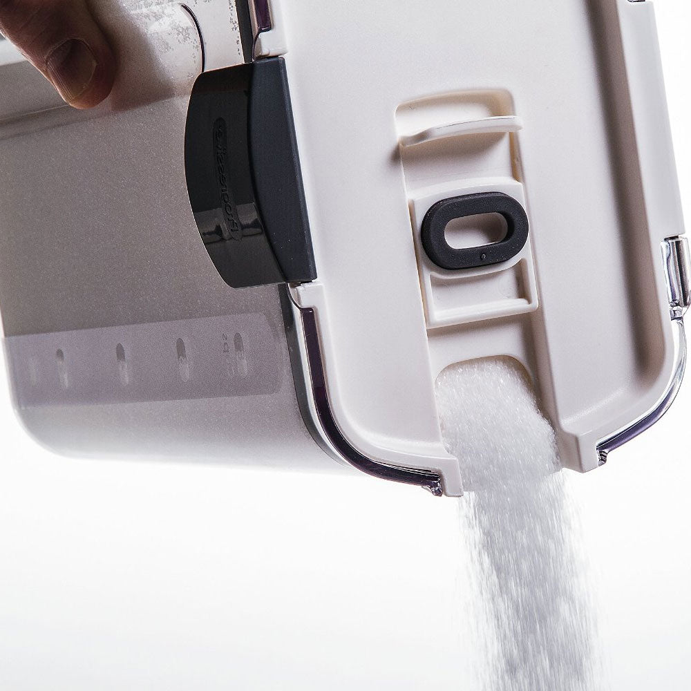 Be ready to bake anything with the Sugar Keeper and Pourer. This long-lasting plastic food container is made from BPA-free materials. The strong stainless steel hinge and latching lid ensure that contents stay fresher for longer. The lid even has a silicone lip to create a tight seal. The lid also features a flip-up pour spout so you can measure sugar without having to open the entire lid. The plastic body of the canister features easy-to-grab grips that make it possible to pour sugar with one hand. The container also has marked measurements in cups so you always know how much sugar you have on hand.